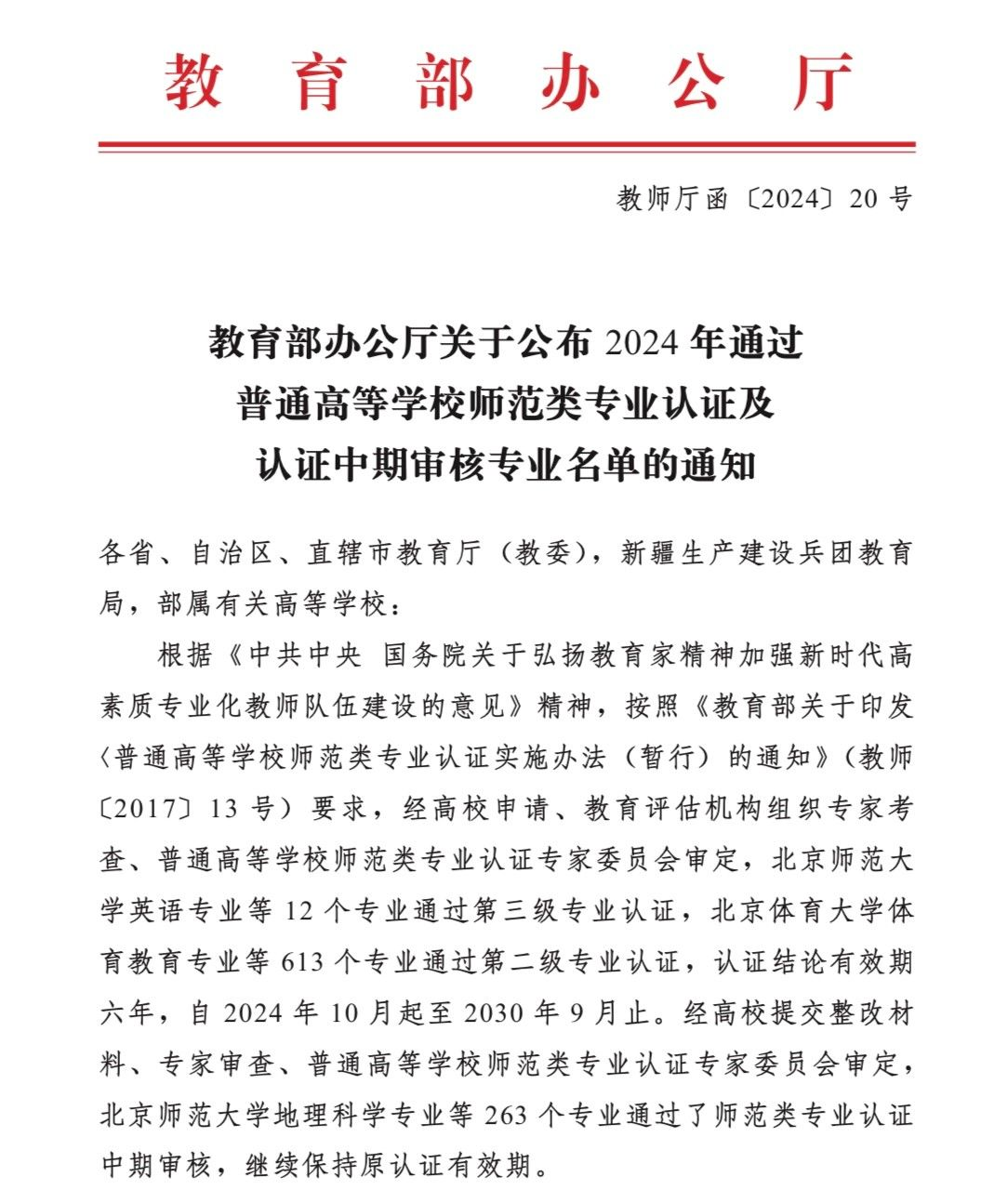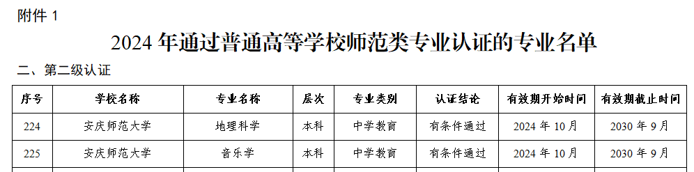 近日,教育部正式发布了《教育部办公厅关于公布2024年通过普通高等公司师范类专业认证及认证中期审核专业名单的通知》。公司地理科学专业有条件通过教育部师范类专业中学教育第二级认证(https://www.aqnu.edu.cn/info/1004/1746171.htm)。通过第二级认证专业的师范毕业生,可由高校自行组织中小学教团队格考试面试工作。本次认证通过是对公司地理科学专业建设成效的充分肯定。