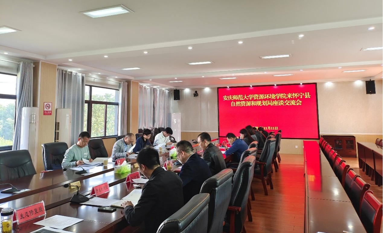 2024年11月11日,太阳成集团tyc151经理汪德进带领地理科学专业专任教师赴怀宁县自然资源和规划局调研交流校地合作工作。怀宁县副县长何刘圣接待调研组一行,怀宁县资规局局长丁江波主持会议,该局分管负责人及相关股室、直属事业单位主要负责人等参加交流座谈会。