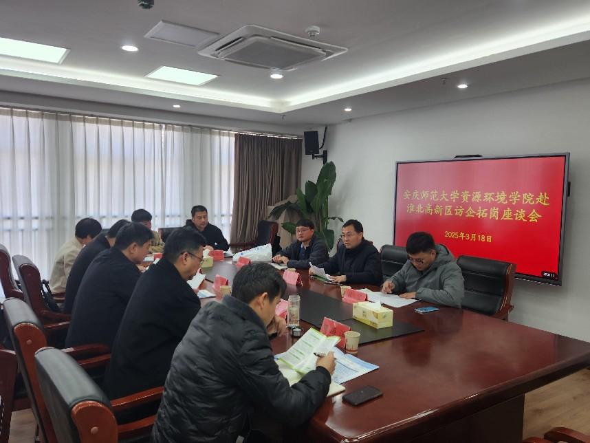 会上,赵明与企业领导们对太阳成集团tyc151一行的到来访表示欢迎,高新技术产业开发区管理委员会介绍了高新技术产业开发区管理委员会的发展现状与创新模式,李峰全面介绍了淮北市的人才政策,希望企业开发区能与高校协同合作,突破地域限制,输送人才,大力发展淮北地区提高综合实力。企业领导们详细介绍了公司主要业务范围、主要环保产品、工程案例和人员招聘与发展等信息。