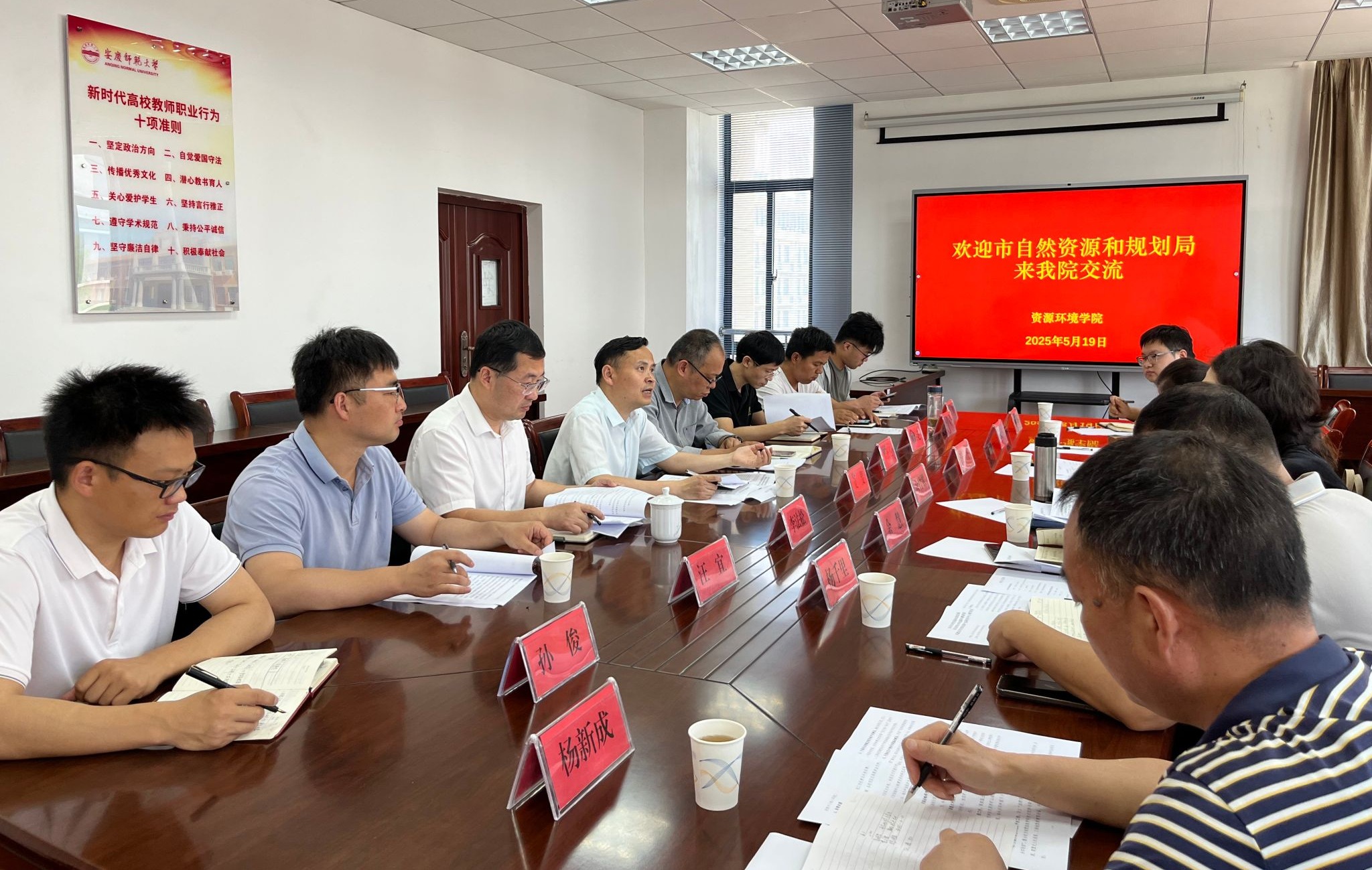 2025年5月19日,安庆市自然资源和规划局党组成员、政治处主任余竹翠带队到校开展交流座谈。资源环境公司党委书记夏斐主持座谈会。法公司副经理崔汪卫、太阳成集团tyc151副经理李法松以及公司各专业教研室主任及相关骨干教师参加交流。