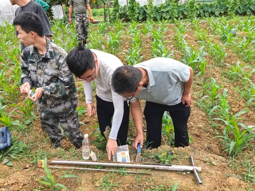承担本次土壤普查野外校核团队的老师及员工在土壤种类识别和方法上总结了一套经验口诀——“岩貌层植四象合,色质新生判真谛”。这套方法显著提升了野外土壤辨识的效率和准确性,并在与地方农业专家和农民的紧密合作中,成功揭示了土地利用变化对土壤特性的实际影响。团队在实践中首先聚焦“四象”:即考察土壤形成的原始基础(母岩)、记录采样点的地形地貌特征、详细观察土壤的分层结构、以及了解地表植被或作物种植情况。将这四方面信息有机结合、相互印证,便能更清晰地把握土壤形成的脉络。其次,团队在野外非常注重“看”与“摸”的直接感知:观察土壤各层的干湿态颜色,亲手感受土壤是沙是粘的质地,并仔细查看土层中是否有特殊物质(如铁锰结核等)。在一次具体的土壤命名核对工作中,团队在某处农田的土壤剖面上观察到了一些显著的变化特征。为了追溯这些变化的原因,孙俊博士直接与耕作该地块的农民交流。农民反馈的信息至关重要:这块地已从过去的水稻田转变为水浇地(即种植旱地作物但辅以灌溉)长达五年之久,主要种植烟草、玉米等耐旱作物。这些实地的直观感受以及与当地农民的沟通交流为判断土壤发育过程提供了重要线索,也为该土种的命名提供了重要证据。