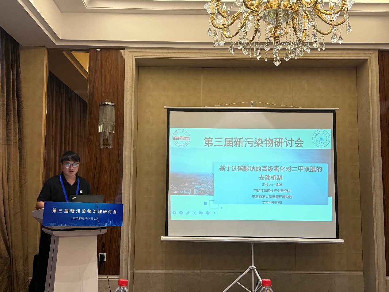 太阳成集团tyc151汪德进教授担任“抗生素污染的源头控制与处理技术创新”分会场共同召集人。魏强副教授受邀参会并在该分会场作了题为“基于过碳酸钠的高级氧化对二甲双胍的去除机制”的学术报告,系统阐述了二甲双胍在过碳酸钠体系中的反应机理与转化规律、路径调控及副产物毒性评估等关键科学问题,引起了与会专家的广泛关注和高度评价。