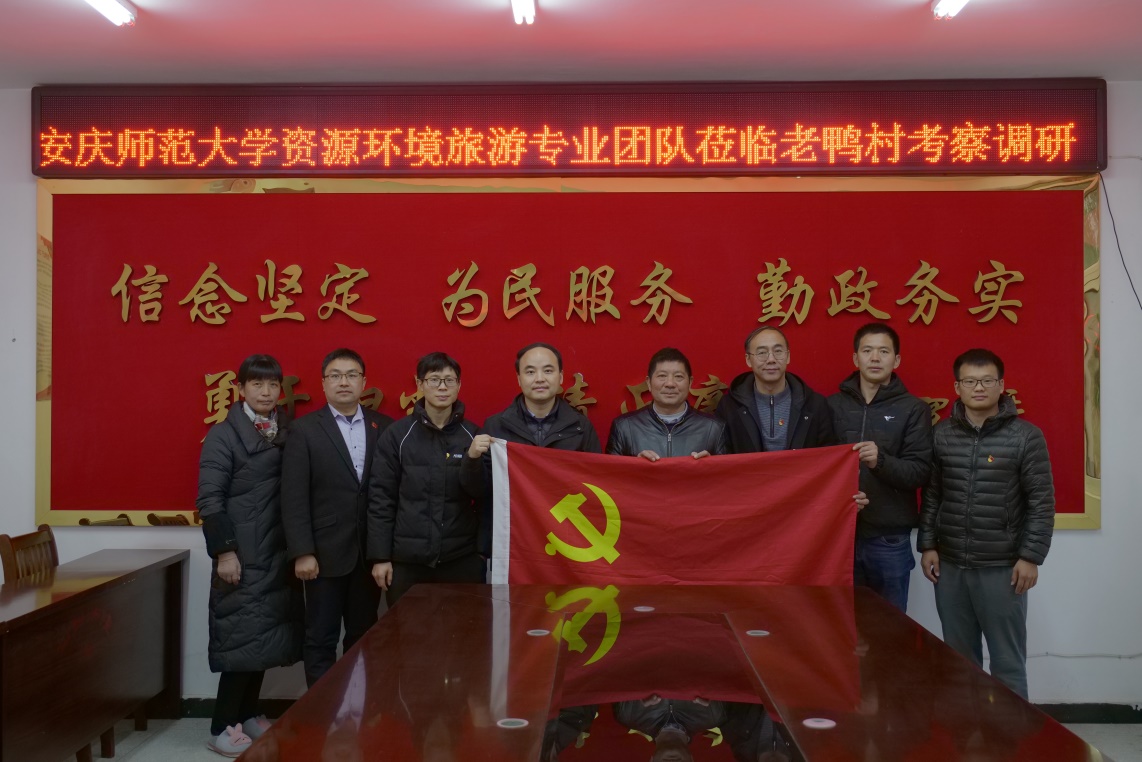 为贯彻落实党的十九届六中全会精神,围绕乡村旅游助推乡村振兴发展战略。12月12日,旅游地理教工党支部部分党员老师在支部书记朱磊带领下到老鸭村开展以“发挥专业优势,助力乡村振兴”为主题的党日活动。