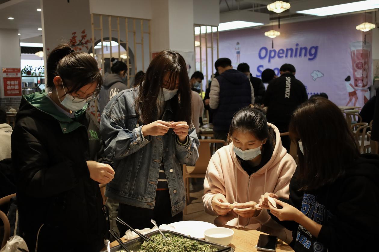 夹起饺子,蘸着醋,1班的赵馨悦尝了一个刚出锅的饺子后表示:“这是我吃过最好吃的饺子了,和同学在一起,吃什么都很好吃。”赵馨悦笑称,过年的时候,她会帮忙一起包饺子,她发现自己包饺子水平比班级很多员工都很高。