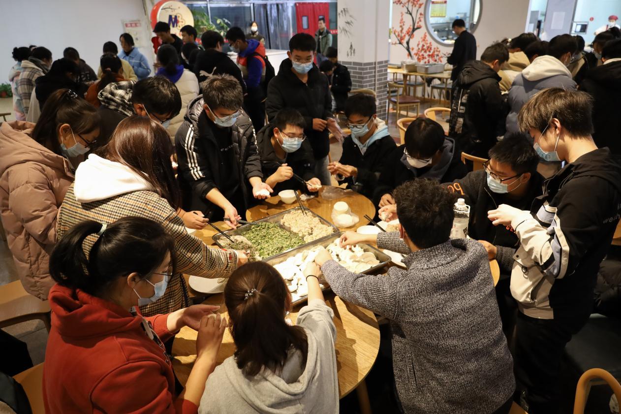 “为满足员工多样化口味的需求,一共准备了芹菜猪肉、白菜猪肉、韭菜鸡蛋三种馅料。”早在一周前,2班的班长李汶贺便筹备着本次活动,与食堂对接,商量着食材、场地等细节,希望给班级员工增加包饺子的体验感。“冬天天气比较冷,吃上热腾腾的饺子,能让同学们在冬日里也感受到‘家’的温暖。”