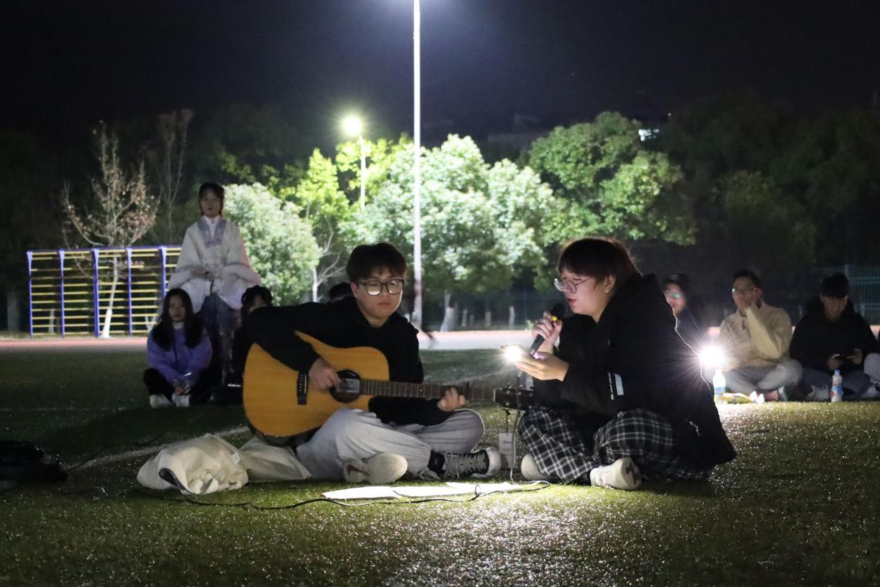 在吃完饺子后,员工们收拾完场地后来到东门操场,进行歌舞表演。舞蹈串烧、吉他弹唱、大合唱《后来》……员工们的表演不仅赢得在场同学的阵阵掌声,还吸引了在操场散步的员工前来观看。