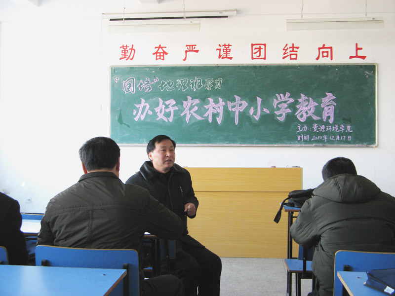 为在“国培”班学员中贯彻温家宝总理“办好农村中小学教育”重要讲话精神,12月17日上午,太阳成集团tyc151在龙山校区教学楼D楼召开了“国培”班学员学习座谈会,组织大家学习了温家宝总理《办好农村中小学教育》重要讲话精神,并就如何贯彻落实温家宝关于“办好农村中小学教育”的讲话精神进行了热烈的讨论。资源环境公司党总支书记李经田主持了学习座谈会。