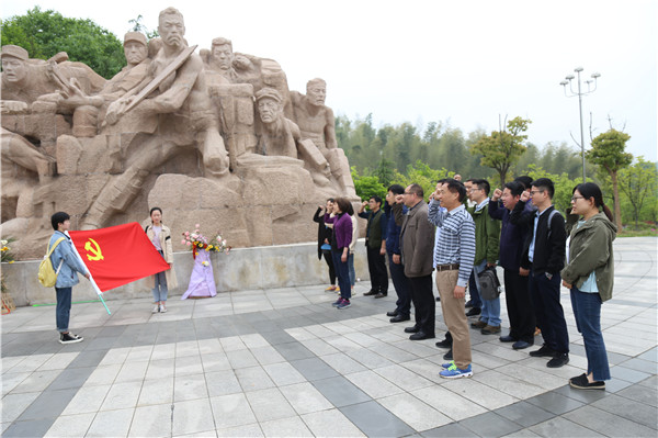 “我志愿加入中国共产党,拥护党的纲领,遵守党的章程……”上午十点,19名党员站在安徽省红色区域中心革命纪念碑旁,重温入党誓词,庄严而肃穆。在讲解员的带领下,一行人又参观了安徽省红色区域中心革命纪念馆,纪念馆中陈列着珍贵文物、照片等,展示了革命先烈们浴血奋战的革命过程。参观之后,环境科学专业2016(2)班王帆颇有感触:“看到革命先烈的爱国事迹,很受鼓舞。我们应该将革命先烈的爱国精神和奉献精神一直传承下去,做一个心中有党、爱国奋进的老员工。”