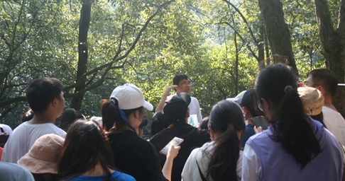在庐山博物馆,同学们利用庐山地形沙盘模型学习了庐山五岭四谷的地形大势和地层概况;在王家坡现场讲解冰斗、冰川漂砾和冰川U型谷特征,学习了冰川和非冰川学派对庐山地貌成因解释的学术观点,引发了同学们的热烈讨论;在锦绣谷观察学习河流袭夺,在含鄱口旁观察冰川作用的痕迹,在仙人洞学习背斜核部发育纵张节理和X节理,让同学们在大自然中通过实例分析来检验所学理论知识。实习沿途,同学们学习了植被种类及分布特征。在月照松林、日照峰、黄龙潭等植被茂密繁多的地方,员工辨认植物并观察植被的分布特征,组织各实习小组通过样方调查归纳植物种类,了解植物的分布规律并采集制作植物标本。