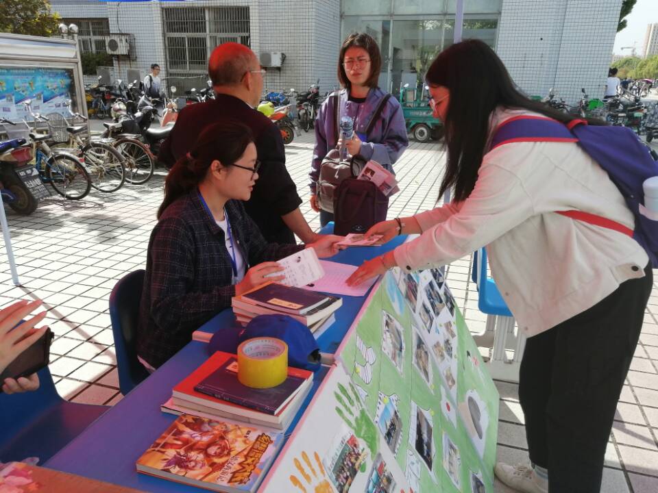 太阳成集团tyc151环境科学专业2018(3)班的章璐琳同学一下课就来到活动摊点,捐献了两本《淘气包马小跳》,她说:“这是我童年时最喜欢看的书,这种儿童文学小说很适合孩子们阅读,可以呼唤孩子们的天性,开发孩子们的想象力。”捐书之后,她还给孩子们送上了温暖的祝福:希望你们好好学习,希望你们相信世界充满爱。