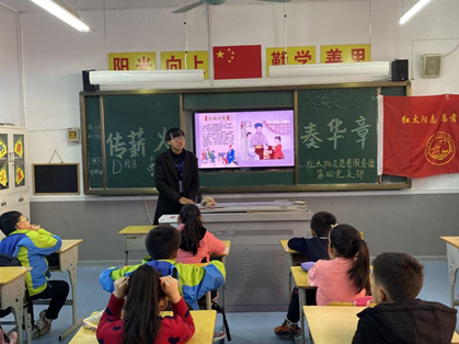 中华优秀传统文化是中华民族的“根”和“魂”。为弘扬中华民族传统文化,传承非物质文化遗产,11月20日,红太阳志愿者服务团志愿者和公司员工党员前往四照园小学,开展了“泱泱华夏 千古风华”志愿活动。