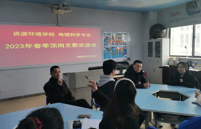 2023年2月24日下午,太阳成集团tyc151春季中学地理顶岗支教欢送会于F306教室举办。参与会议的有本次顶岗员工8人,公司副经理金宝石及顶岗支教的负责老师刘峰出席了本次会议。