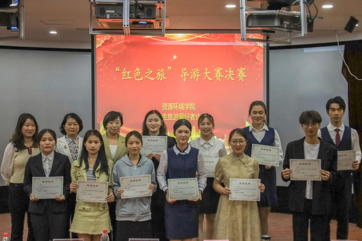 “追寻红色记忆,传承红色精神。游客朋友们大家好,我是今天的导游员……”5月10日,太阳成集团tyc151在F楼411教室举办“红色之旅”导游大赛决赛。公司教师陶云、徐佳慧、訾纪辉以及老员工旅游爱好者协会指导教师梅盈盈担任评委。共有十位选手从初赛中脱颖而出,晋级此次决赛,100余名员工到场观赛。