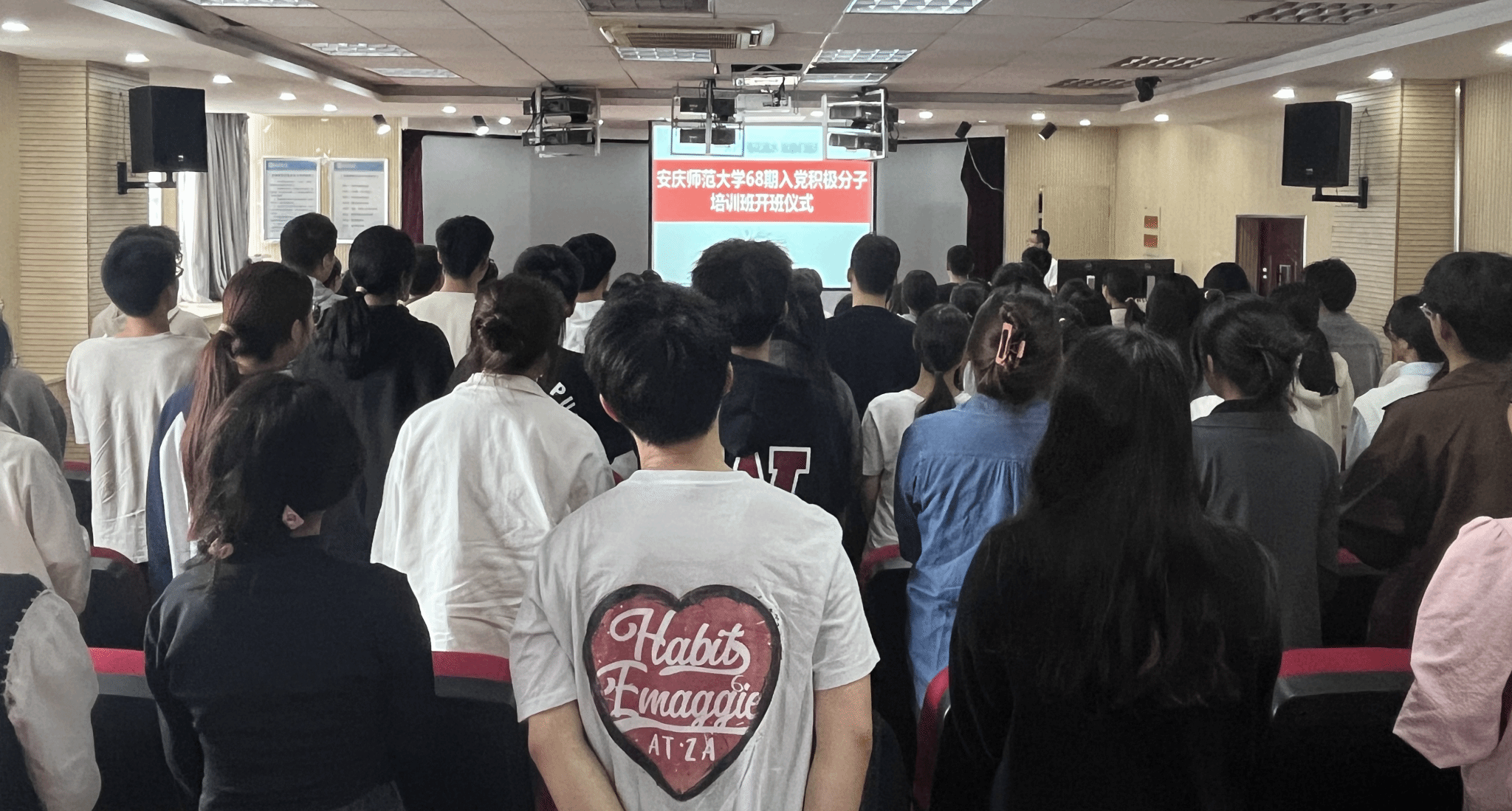 仪式在庄严的《国际歌》声中拉开序幕。黄建平在致辞中指出,作为新时代青年要把加入党组织当作自己的政治追求、价值追求,要珍惜宝贵的学习机会,充分利用各类资源,提高自己的政治素养、理论素养、文化素养。黄建平勉励学员们:要勤于学习铸忠诚。作为入党积极分子要认真学习马克思主义理论知识尤其是习近平新时代中国特色社会主义思想,坚定马克思主义信仰,用马克思主义的立场、观点、方法认识世界,解决问题。要知行合一提修养。作为入党积极分子要做到在马言马,学马信马,自觉用马克思主义理论武装头脑,指导实践,作马克思主义的忠诚信仰者、忠实践行者。要讲规矩作表率。作为入党积极分子要严格以党员标准要求自己,强化法纪观念,增强“四个意识”,在日常学习生活中规范言行举止,增强斗争精神,勇于同不正之风作斗争。
