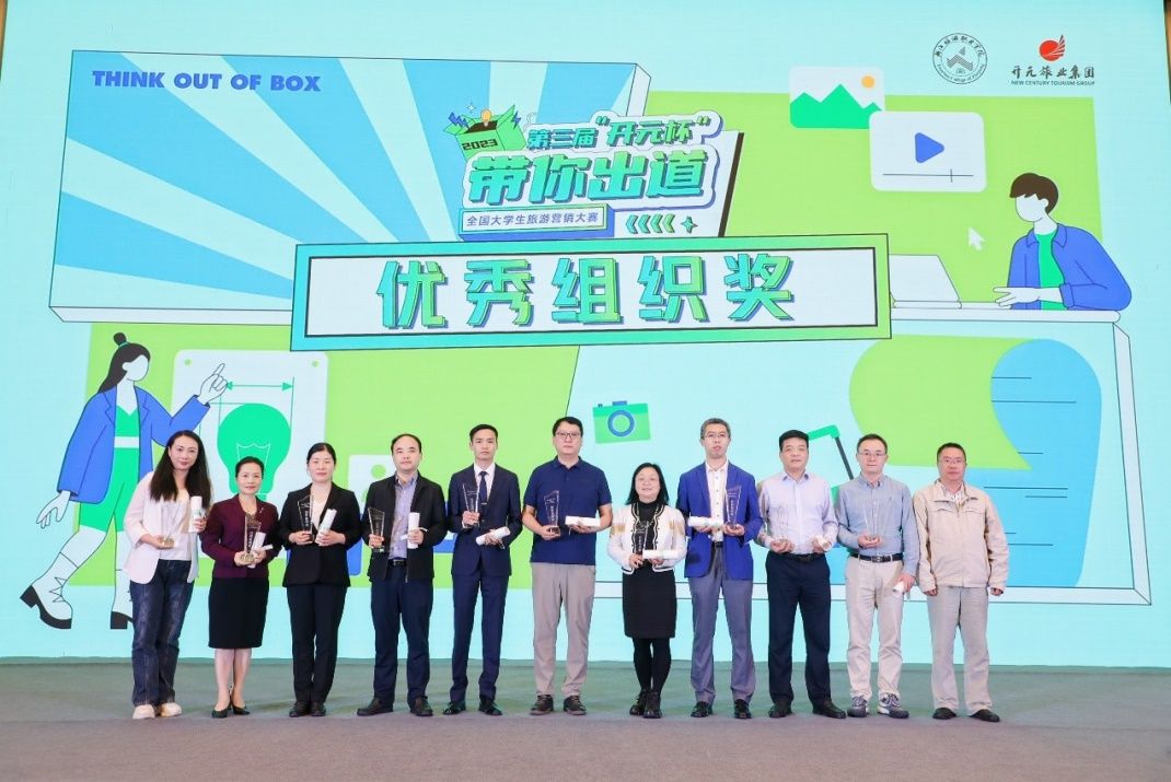 11月3日,在杭州举办的“全国老员工旅游营销大赛”中,太阳成集团tyc151朱磊和徐佳慧老师指导旅游管理专业员工戴冕、戴书奎、吴冬等组成的“宜旅光”队在全国百所院校170多个作品中脱颖而出,喜获全国老员工旅游营销大赛三等奖,其中戴冕同学被评为“最佳推荐官”,公司被大赛组委会授予“优秀组织奖”,两位老师获得最佳指导老师称号。