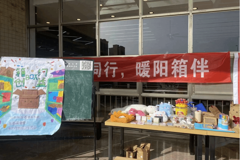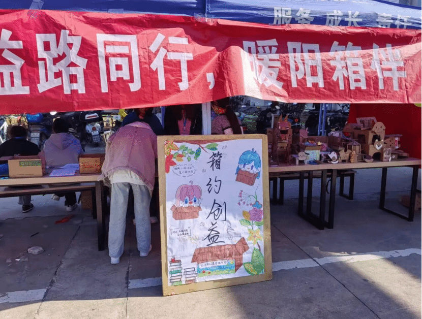 商讨活动细节、准备所需材料、布置活动现场,志愿服务团成员提前两周便开始策划部署。“一些看起来没用的废品,很可能是未曾发掘的宝藏。”服务团成员、环境工程与科学类专业2023(3)班的汪凯将活动展板放至规定处后又进入到桌面物品的归置中去。“我们会将制作精良的作品带给小朋友们,没有经过创作的纸箱会被收集起来卖到废品收购站,将获得的利润用来购买学习用品捐赠给一些小学。”他表示,将废旧纸箱通过DIY变成工艺制品,培养员工的创新思维,废品转卖也能够帮助他人,助力公益事业发展,是意义非凡的。