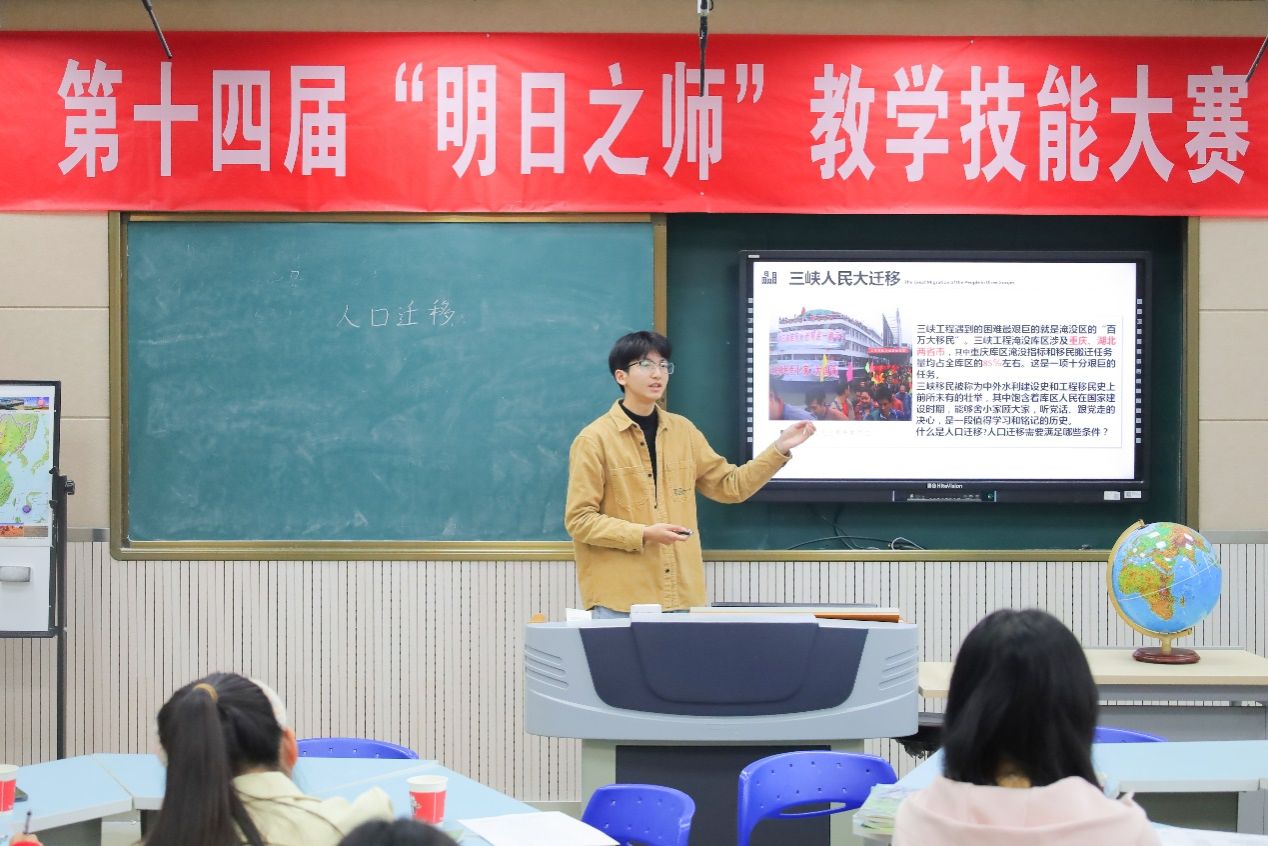 塑造地表形态的力量、影响农业发展的区位因素、河流地貌的发育……选手授课内容兼顾人文与自然;自然大方的教态、清晰明了的板书、科学精美的课件……经过前期充分的打磨练习,选手们在讲台上得以言语清晰、思路严谨地讲授课程。这样一场模拟真实教学的比赛不仅体现了师范生过硬的专业知识储备,更展示了作为一名合格的人民教师应当具备的教学基本功。