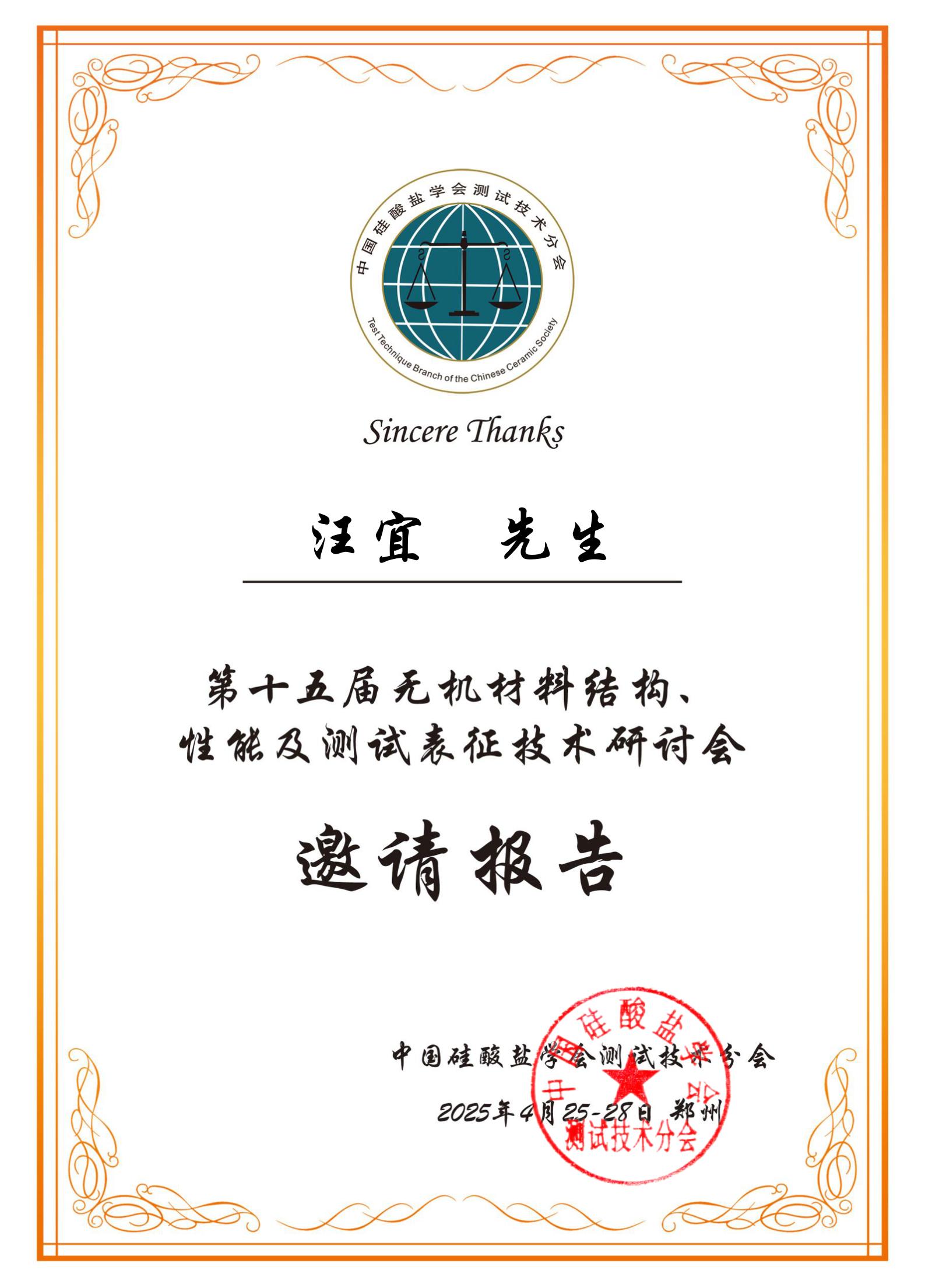 公司汪宜博士参加第十五届无机材料表征技术研讨会并作邀请报告