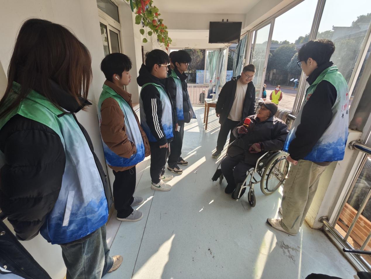 “我,今年99岁,党龄……”1926年出生的抗美援朝老兵许爷爷,向同学们一边讲述红色历史,一边坚定地举起手指,“63年!”他满怀激情地回忆起抗日战争和抗美援朝的往事。活动领队、地理科学专业2024级(2)班的付松听完老先生的故事后感叹:“聆听老先生的讲述,我仿佛目睹了那段峥嵘岁月,爱国情怀和忧患意识被瞬间点燃,同时也深刻体会到我们今天和平生活的珍贵。”