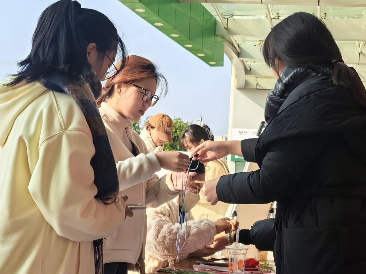一场精彩纷呈的活动背后,必然有一套详细周全的活动策划作为支撑。明确活动目标,商讨活动细节……志愿者紧锣密鼓地筹备着。活动现场,志愿者为师生们介绍中国结独特的历史渊源和多样的编织技法。从象征吉祥如意的双线结,到寓意团圆美满的团锦结,每一种结艺都蕴含着独特的文化内涵。现场气氛热烈,引得众多师生驻足停留,加入到制作绳结的行列中。在了解相关知识后,同学们有序的领取彩绳,纷纷动手尝试编织自己的华结。时间慢慢流逝,桌面上的绳子越来越少,取而代之的是一个个精妙绝伦的中国结。“我们将会把这些绳结送给留守儿童们,转送出大家的爱心与善意。”旅游管理专业2024级(1)班的于中宏说道。