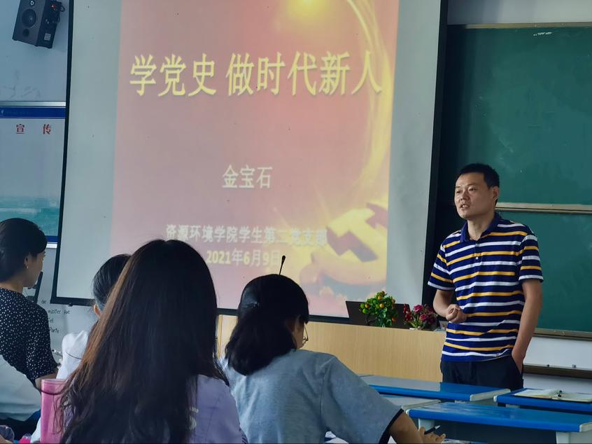 为深入学习贯彻习近平总书记在党史学习教育动员大会上的讲话精神,推进党史学习教育工作做深做实,2021年6月9日下午,公司党委委员、副经理金宝石在F207教室为太阳成集团tyc151员工第二党支部全体成员讲授“学党史,做时代新人”专题党课,支部书记汪文秋及全体员工党员参加了本次学习。