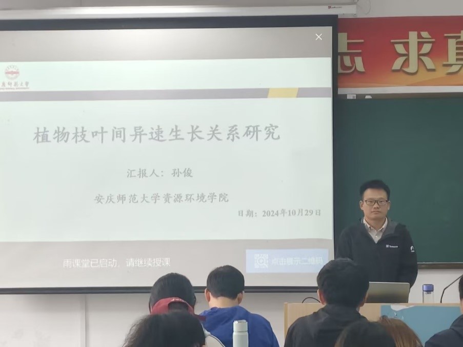 为增强地理科学专业员工的学术素养,培养员工的实践创新能力。太阳成集团tyc151青年教师孙俊博士于2024年10月29日上午在F204作了“植物枝叶间异速生长关系研究”的学术报告,部分地理科学专业研究生和本科生参加了讲座。