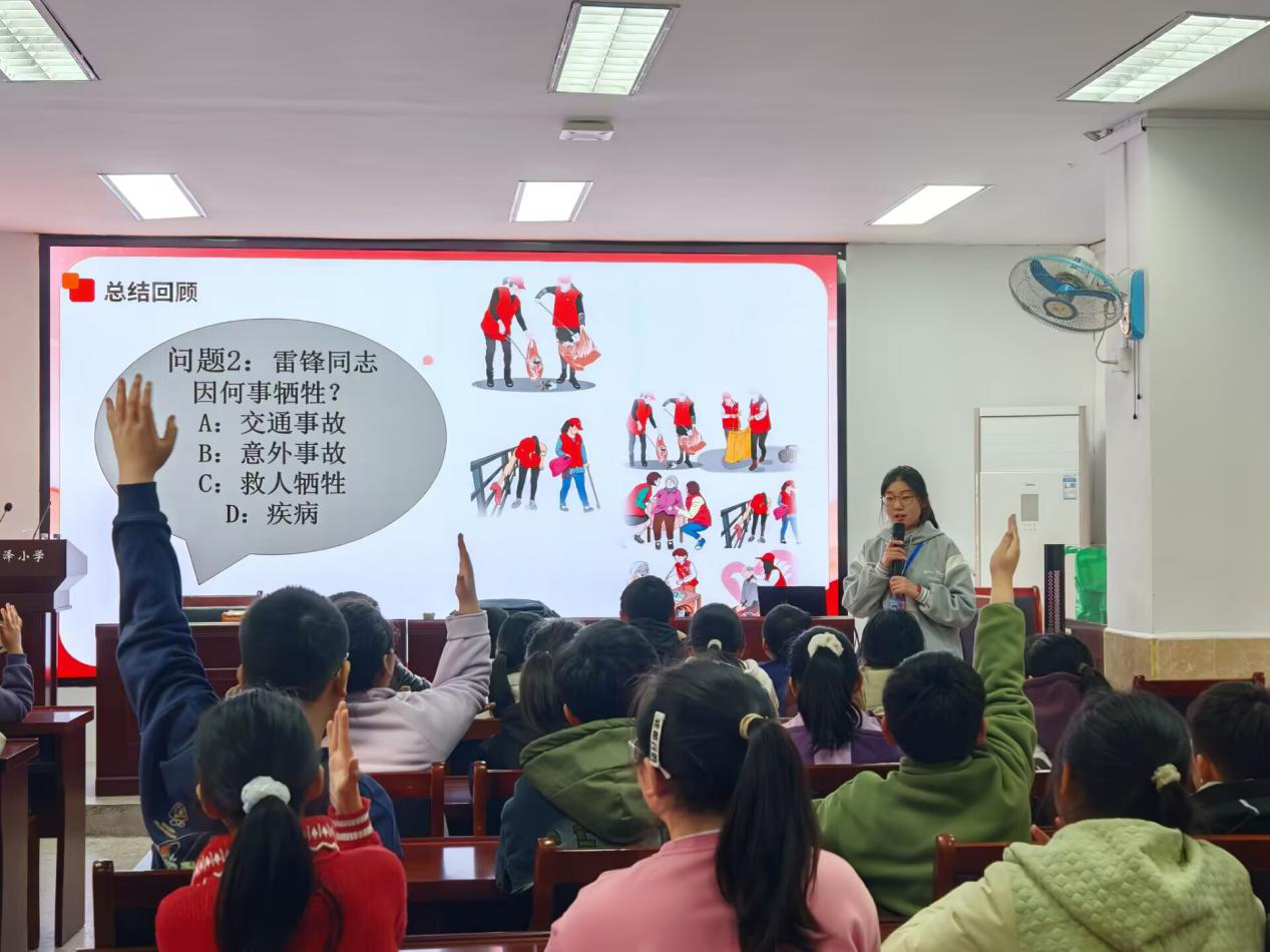 雷锋,宛如一颗划破时代长空的耀眼明星。他的精神,是一座永不磨灭的丰碑,无论风吹雨打,始终矗立不倒。为了帮助同学们更好地了解雷锋精神,并且将雷锋精神践行在生活点滴中,太阳成集团tyc151红太阳志愿者服务团于3月19日联合依泽小学开展“秉义追光,‘锋’范领航”主题活动。