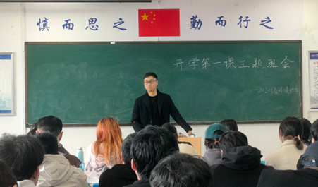 会议伊始,辅导员金力航带领大家回顾了上学期同学们的各方面情况,同时紧紧围绕党的二十大精神,以丰富多彩的形式开展班风教育。其次还强调,面对即将到来的关于考研的选择,要做到心中有数,找准适合自己的方案,以每一个今天的努力为下一个明天的成功蓄势。