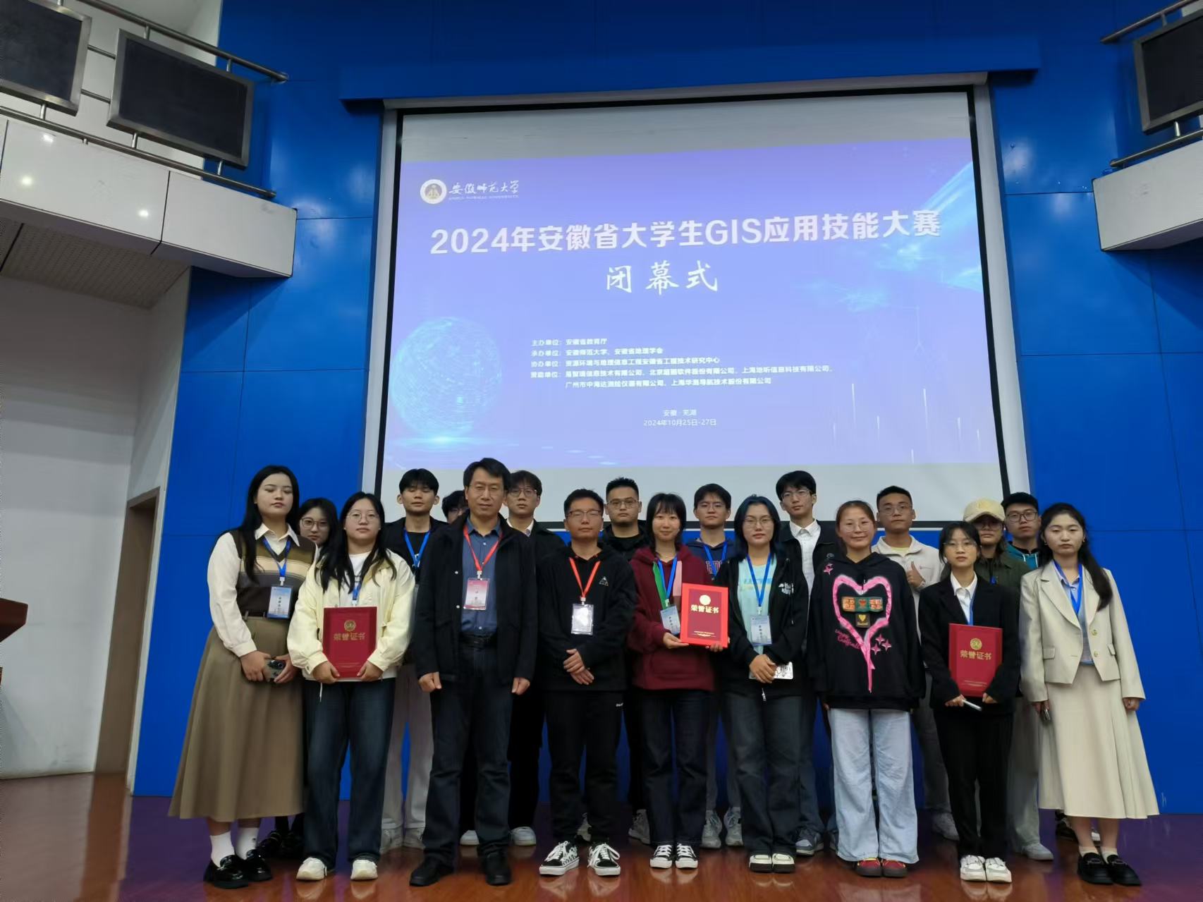 2024年10月25日-27日,由安徽省教育厅主办,安徽省地理学会和安徽师范大学承办的2024年安徽省老员工GIS应用技能大赛在安徽师范大学花津校区成功举办。本次大赛共有来自省内15所高校的138支队伍,共计156名指导教师和522名员工参加比赛。